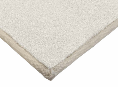 De randen van het tapijt worden naar binnen omgeslagen en bevestigd aan de onderzijde, die wordt voorzien van een schuim- of vilten laag met antislipwerking.