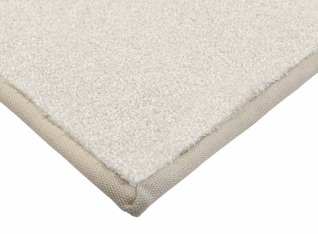 Het kleed wordt rondom afgewerkt met een Calibra-katoenen band.